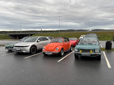 Nede på parkeringa var det flere som kjørte gammelbil, til og med åpent selvom at været var litt ufyselig.