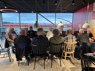 Ble veldig bra frammøte i dag, vi måtte bytte til ett lengere bord og det ble trangt om plassen der også.