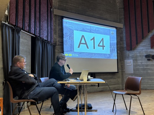 Bjørn Wennberg t.h. forteller mens Gudbrand styrer billedsekvensen
